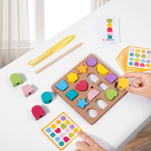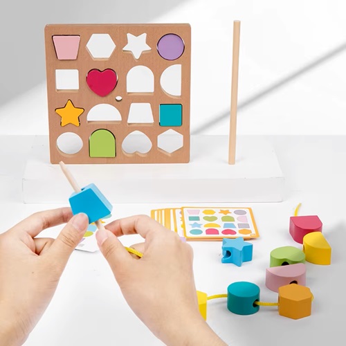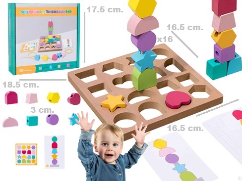 0126 *TABLERO Geométrico de Encaje, Ensarte y Enhebrado* (18.5×17.5 cm.) 39 Pcs.