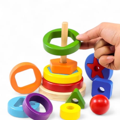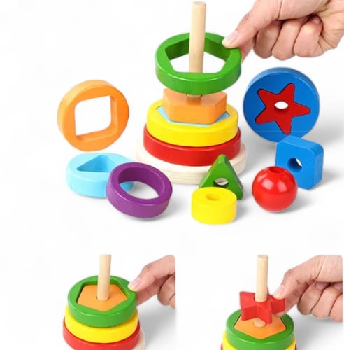 Sé el primero en valorar “0354 *TORRE GEOMÉTRICA LÓGICA Apilable de Aros Dobles* (9.5×16.5 cm.) 16 Pcs.”