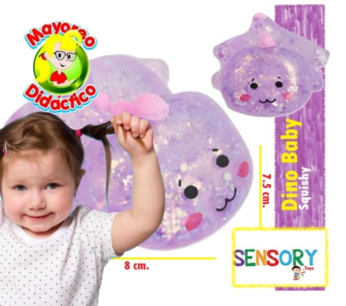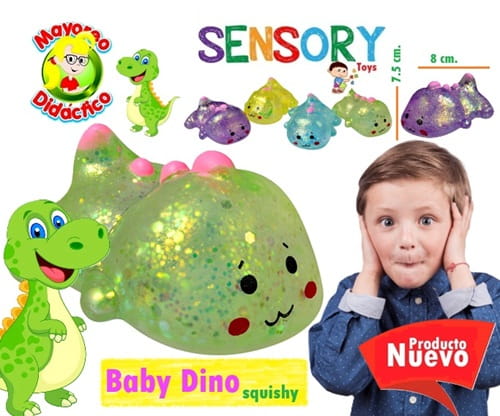 Sé el primero en valorar “0396-12 *CAJA c/12 Dinos Bebés Gel Peso y Brillo* (5×10 cm.) 4 Colores Diferentes.”