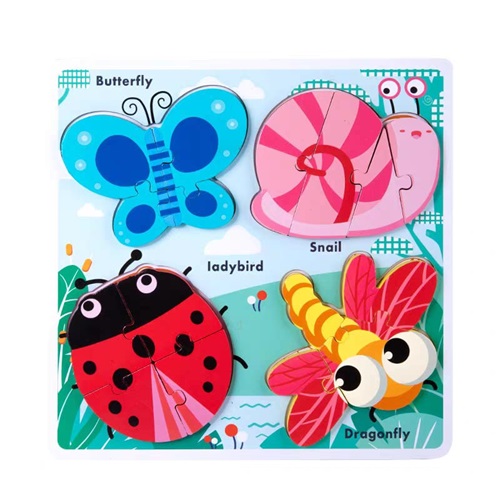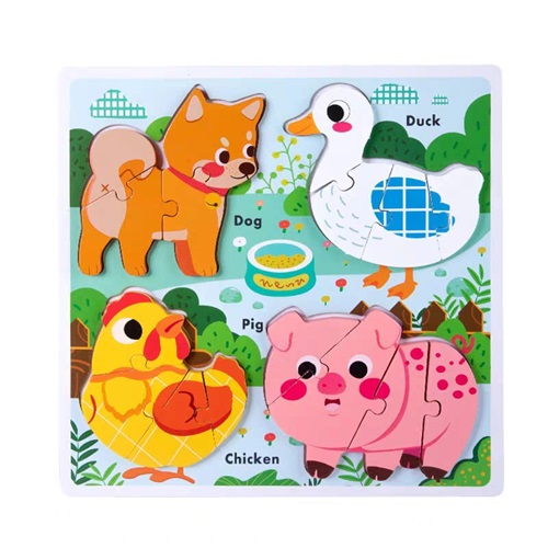 0457 *Tablero c/4 Rompecabezas de 3 Pcs. Grueso* (30×30 cm.) 6 Diferentes.