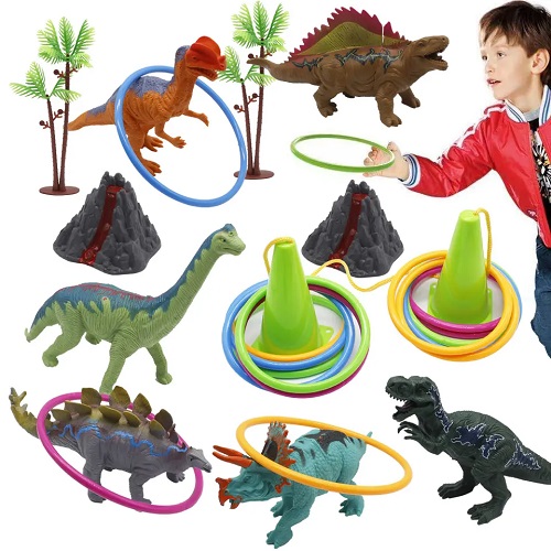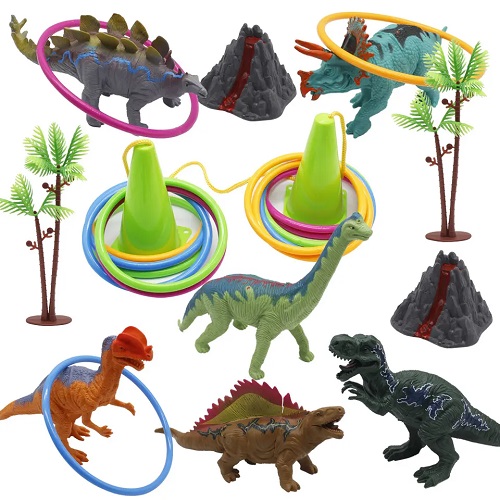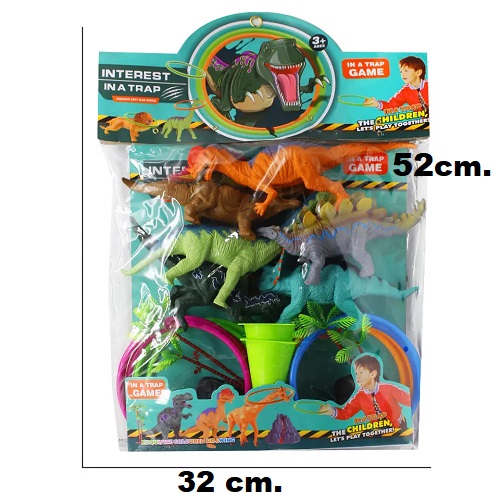 0500 *Juego de Aros DINOSAURIOS* (32×52 cm.) 2 Conos+12 Aros+ Cuerda+ 6 Dinos+ 2 Montañas+ 2 Arbustos.