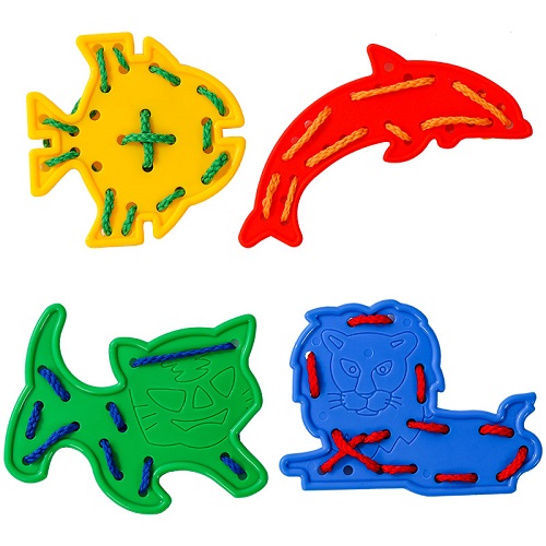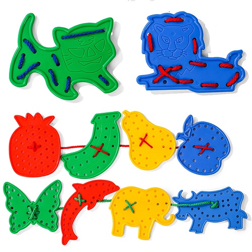 0820 *ANIMALITOS Y FRUTAS PARA ENHEBRAR en Bolsa* (28.80×29 cm.) 15 Pcs.+Cordones.