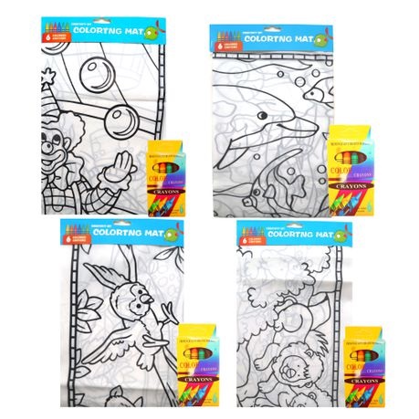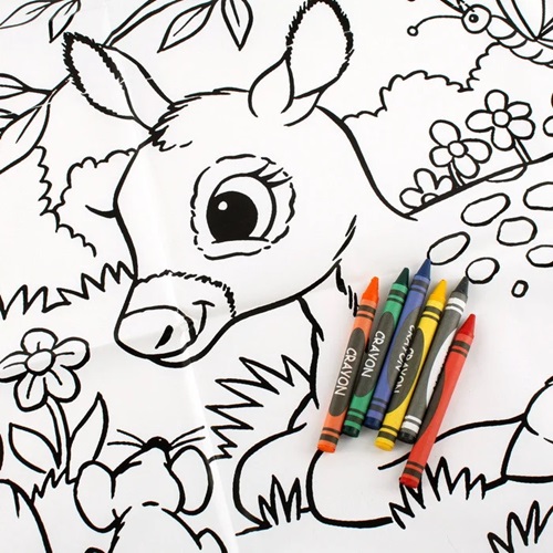 0975 *Mantel p/Colorear* (80×70 cm.) Mantel+6 Crayolas. 4 Diferentes.