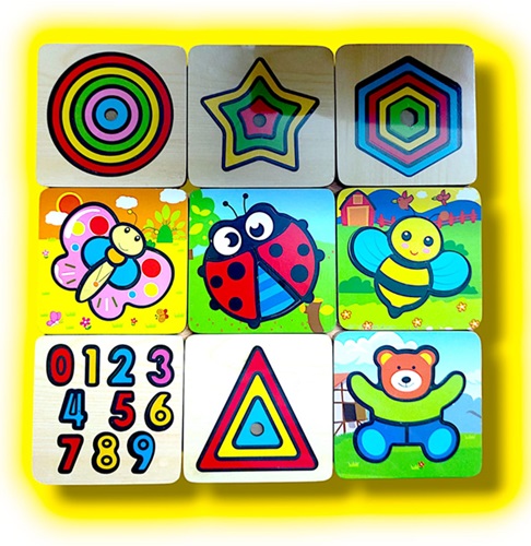 1510 *Set de 9 Rompecabezas d/Madera p/Bebé* (11×11 cm.)