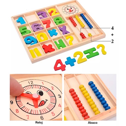 2253-B *Caja Visual de Cálculo Matemático* (25x20cm.) 32 Números +Ábaco + Reloj .
