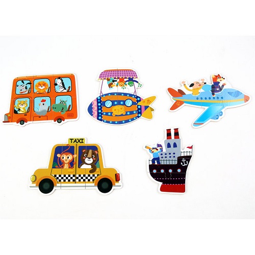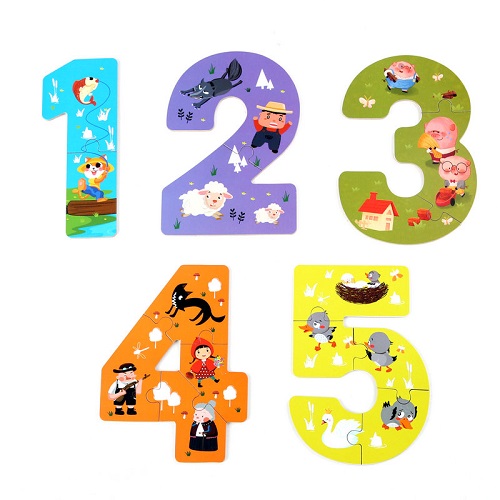 2754 *Caja c/5 Rompecabezas de 3 a 5 Pizas Reversos Numérico* (14×12 cm.) 5 Diferentes.