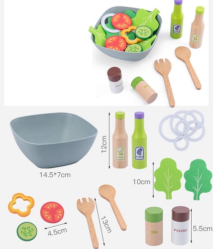 2974 *Juego d/Ensalada en Madera* (18×18.5 cm.) Tazón +25 Pcs.