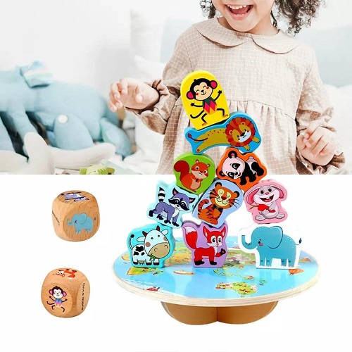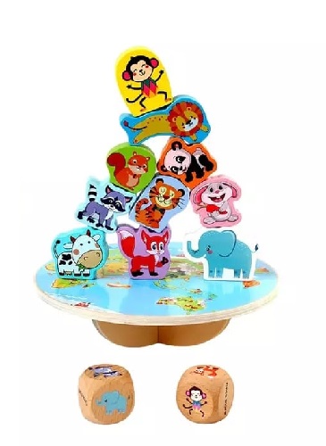 3734 *Balanza Columpio de Madera Animalitos* (20.5×19 cm.) 1 Balanza+10 Figuras +2 Dados.