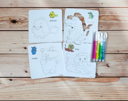 4126-12 *BOLSA c/12 Set de Tarjetas de Cartón Troqueladas p/Iluminar con Guía* (10×10 cm.) 4Tarjetas+ 4Plumones