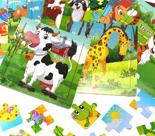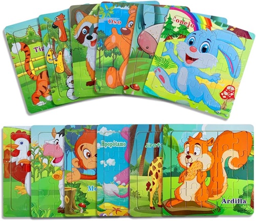 4202 *Rompecabezas d/Madera 20 Pcs Base Ilustrada ANIMALES Y SUS NOMBRES * (15×15 cm.) 12 Diferentes.