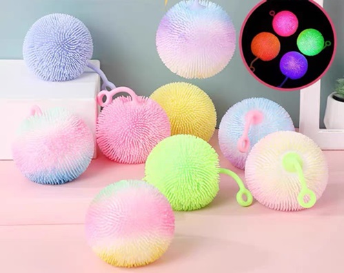 4330-12 *CAJA c/12 Pelotas LED Pelitos de Colores* (9 cm.)