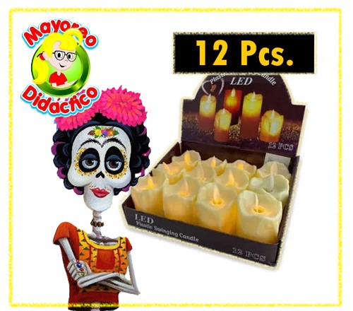 4434-12 *CAJA c/12 Velas Blancas Led p/Altar de Muertos* (5×8 cm.)