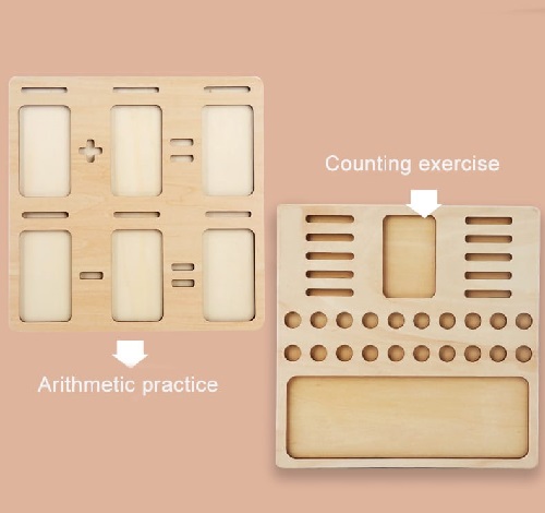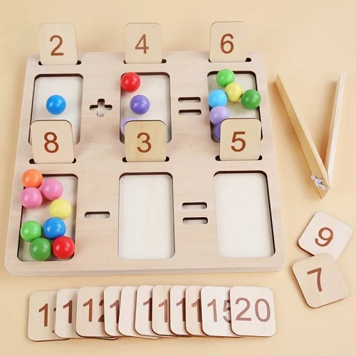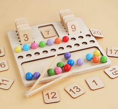 4465 *Tablero Montessori 2 en 1* (24.5×23 cm.) Tablero+Pinzas+20 Perlas+20 Números.