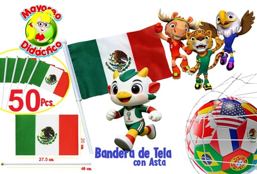 4491-50 *Paquete c/50 Banderas México c/Asta MEDIANA* (40×28.5 cm.)