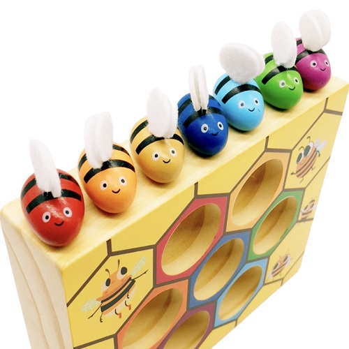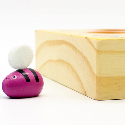 Base de Madera Gruesa (3 cm.) + 7 Abejas + Pinzas Plásticas.