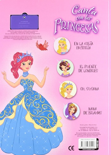 Un precioso libro con cuatro bellas melodías y la letra para cantarlas, para que disfrutes de la música y de las bonitas ilustraciones de tus princesas preferidas.