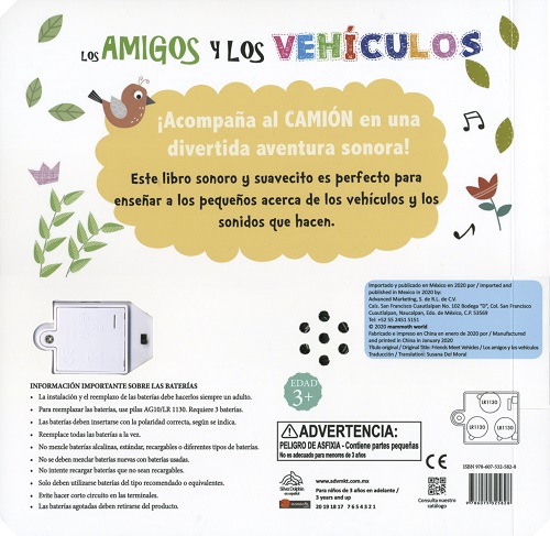 5828 *Los Amigos y los Vehículos Libro d/Cartón c/5 Sonidos* (23.5×23 cm.) 10 Pág.