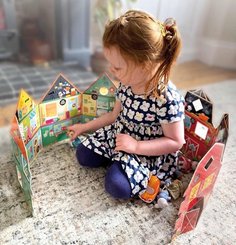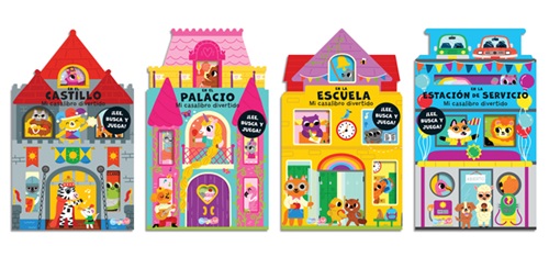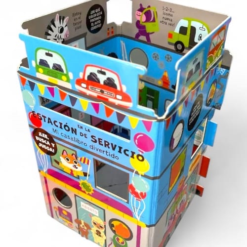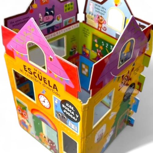 6264 *LEE, BUSCA Y JUEGA Libro d/Cartón Armable* (12×20 cm.) 6 Pág. Palacio, Escuela, Catillo o Estación de Servicio.