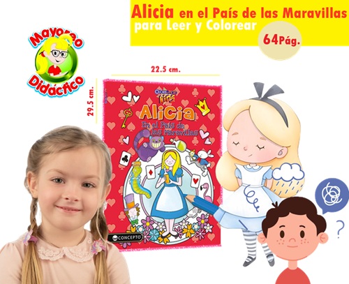 6400 *ALICIA EN EL PAÍS DE LAS MARAVILLAS para Leer y Colorear* (22.5×29.5 cm.) 64 Pág.