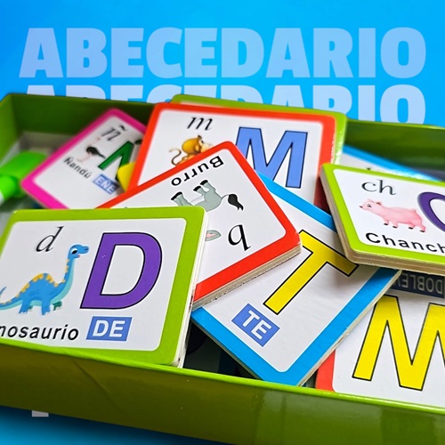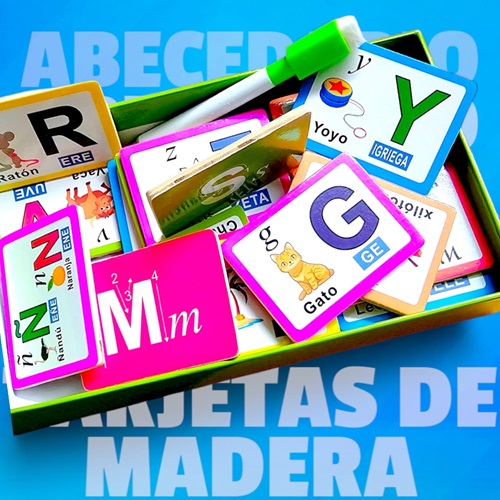 6456 *TARJETAS COGNITIVAS de Letras en Madera* (21.5×12.5 cm.) Caja c/28 Tarjetas Dobles+Plumón.