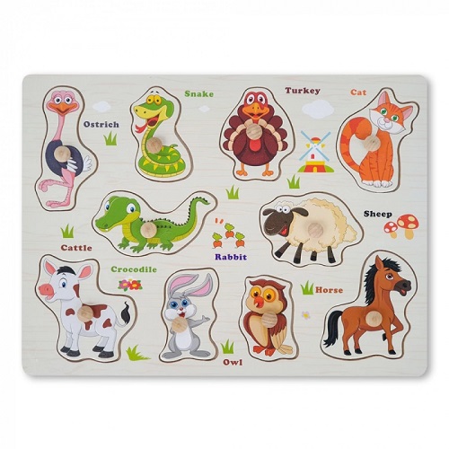 6602 *Rompecabezas c/PIJAS DE MADERA* (30 x 22.5 cm.) ANIMALES.
