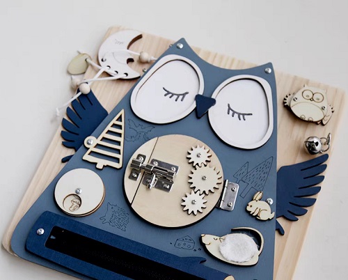 7214 *Buhito Azul Montessori Tablero Sensorial de Habilidades Finas* (33×30 cm.)