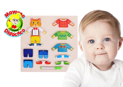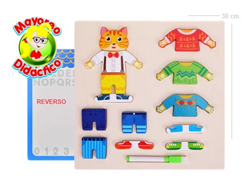 7247 *Tablero d/Madera c/Pizarrón LA ROPA DEL GATITO* 30 cm.) 14 Pcs.+Tablero.