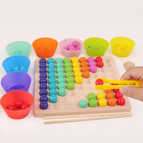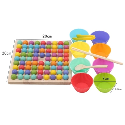 Con el tablero de perlas de madera los pequeños ejercitarán su intelecto y su capacidad de exploración. El niño aprenderá a contar y a diferenciar y clasificar los colores de un modo interactivo. Por si fuera poco, con los palillos y cucharas ejercitarán su motricidad fina y la coordinación ojo mano al sujetar las perlas y clasificarlas. Además, los enseña a contar. Es un juguete dinámico, de materiales atractivos para el aprendizaje de todos los niños.