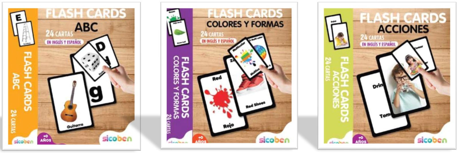 7524 *Flash Cards ABC, Acciones o Colores y Formas* (15×10 cm.) 24 Tarjetas.
