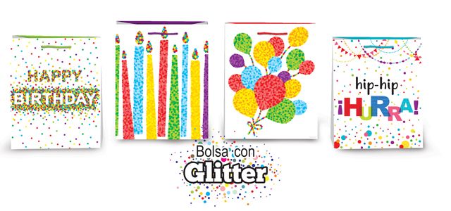 7553 *Bolsa de Regalo Cumpleaños Glitter* (25×33 cm.) 4 D. INDIVIDUAL.