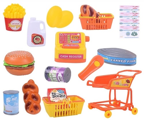 7586 *Juego de TIENDA DE COMESTIBLES* (31.5×45 cm.) 17 Pcs. +23 Billetes.