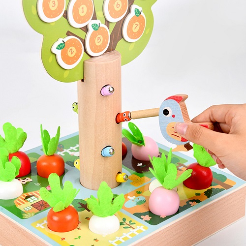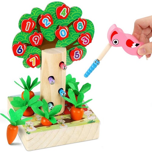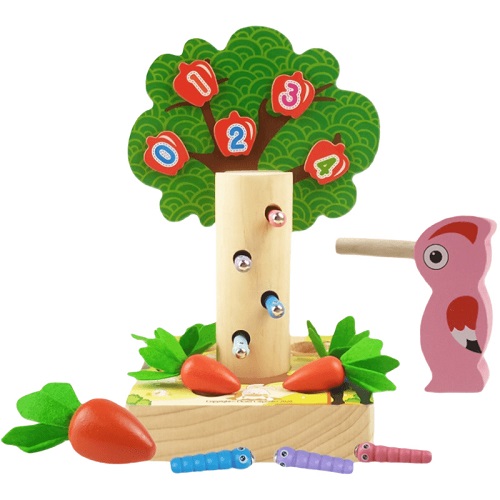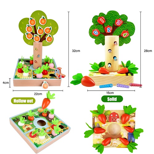 8694 *Árbol Magnético 3 en 1, Atrapa Gusanos, Clasifica los Tamaños de las Zanahorias y Aprende los Números* (20×15 cm.) 24 Pcs.