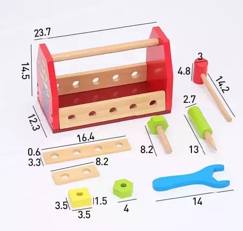 9087 *Caja de Herramientas de Madera* (24×15 cm.) 15 Pcs.