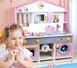 9122 *COCINA Y CENTRO DE LAVADO ROSA* (62×72 cm.) +12 Accesorios.