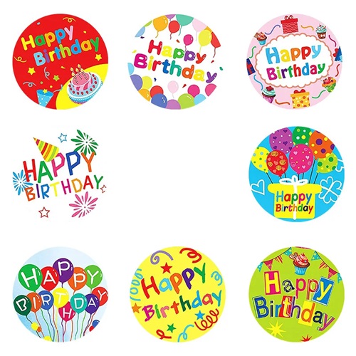 9332 *Sticker´s Motivacionales e/Rollo *HAPPY BIRTHDAY* (2.5 cm.) 500 Pcs.