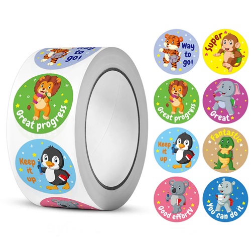 9332 *Sticker´s Motivacionales e/Rollo *MASCOTITAS MOTIVADORAS* (2.5 cm.) 500 Pcs.