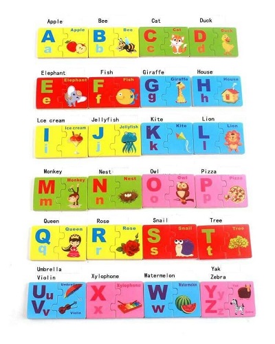 9604 *Match Ilustrado d/Madera LETRAS Mayúsculas y Minúsculas* (19.5×13.5 cm.) 48 Pcs.