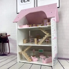 9933 *CASITA DE MUÑECAS c/Muebles en Madera* (41×66 cm.) +15 Accesorios.