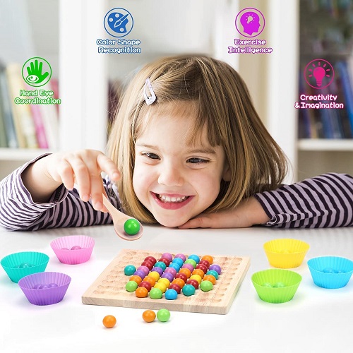 Se recomienda el uso acompañado de un adulto en niños menores de 3 años ya que pueden ser ingeridas las canicas de madera.