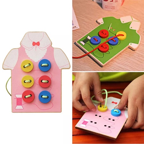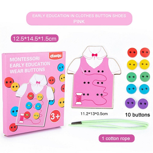 8564 *Montessori Early Education Wear Buttons* (12.5×14.5×1.5 cm.) 12 Pcs. 1 Camiseta d/Madera +10 Botones+1 Cordón.