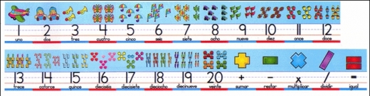 FON1002 *Los Números* Decorado Impreso e/Cartulina. (8 Figuras +Títulos e/Español e Inglés)
