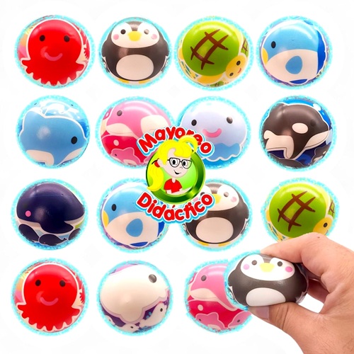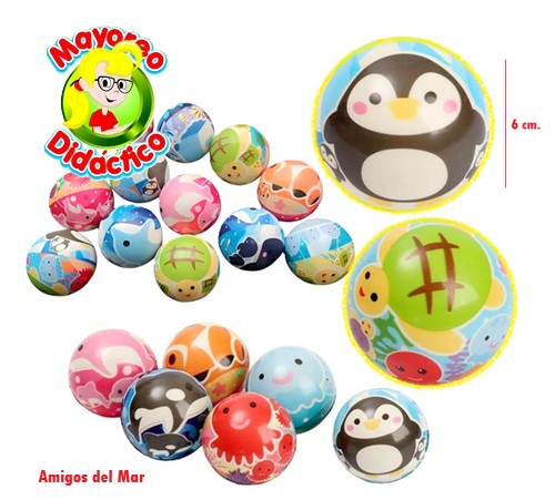 PCF-12 *PAQUETE c/12 Pelotas de Esponja MEDIANAS* (6 cm.) AMIGOS DEL MAR